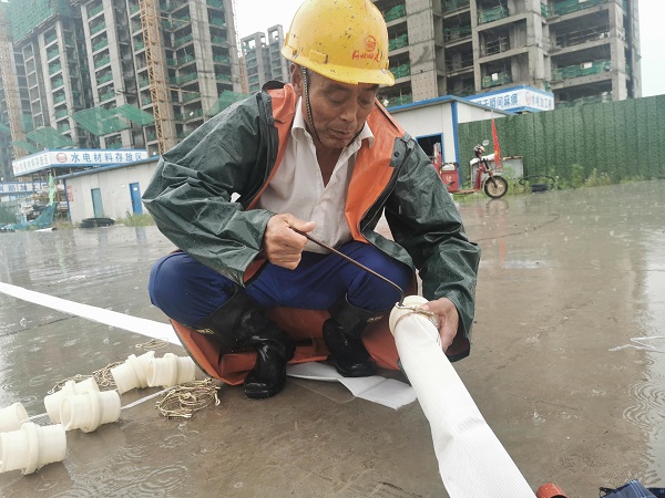 7月17日至21日,河南省遭遇极端强降雨天气。五分公司禹州海盛湖滨豪庭项目针对此次强降雨,积极行动,一方面备好防汛车、潜水泵、砂石料等抢险物资,应对汛情;另一方面加大夜间巡逻频次,在车库、基坑等低洼部位24小时不间断抽水,防止积水,保证了项目安全。